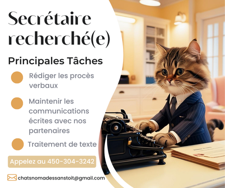 Chats Nomades Sans Toit est à la recherche d’un(e) secrétaire bénévole pour contribuer à notre mission en offrant un soutien administratif